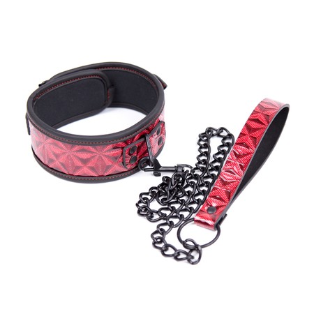 קולר דמוי עור משובץ בצבע אדום עם סגירת אבזמים ממתכת שחורה